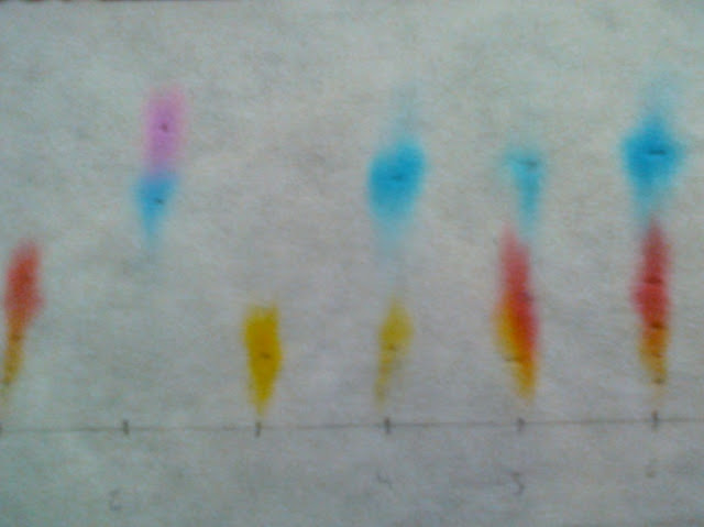 solvente sobe pelas fibras do papel. Ao chegar às manchas, as diferentes